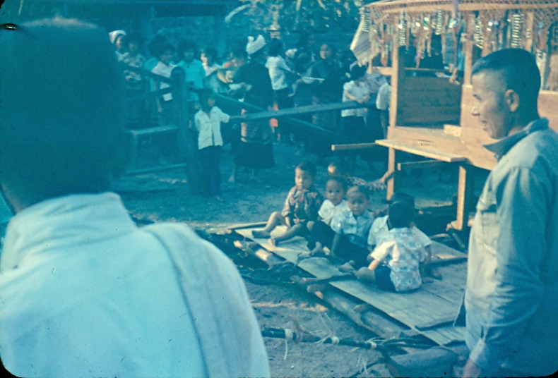 | ก.พ. 1960 พิธีตานคนตายที่บ้านแวน เด็กๆ นั่งเล่นอยู่ใกล้กับเฮือนน้อย | สไลด์