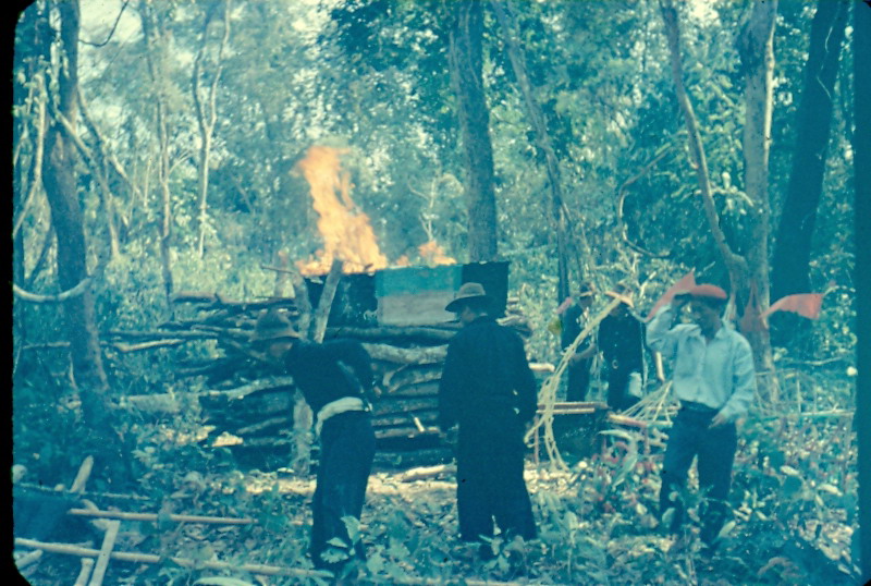 | ปลายเดือน ม.ค. 1960 งานศพบ้านพ่อใหม่ใจ (HH 42) โลงศพกำลังถูกเผา | สไลด์