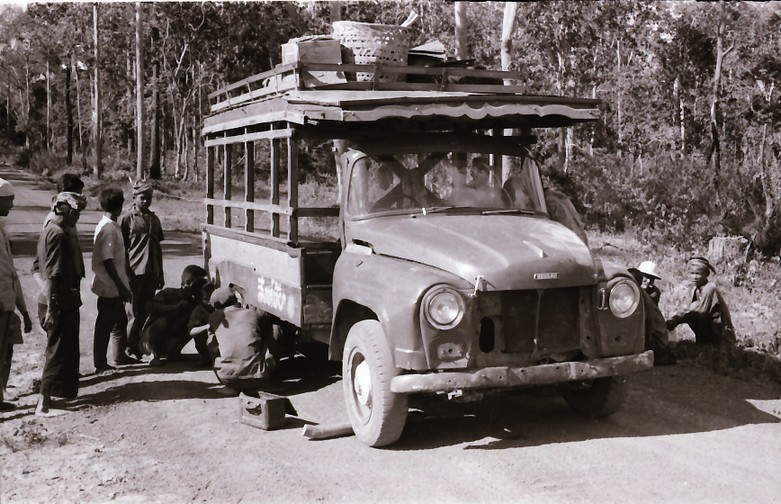 ชาวศรีสะเกษกำลังเปลี่ยนยางรถยนต์