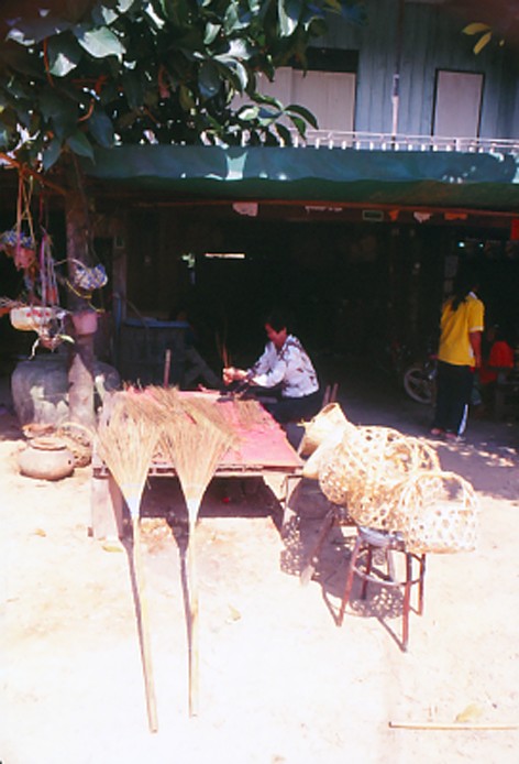 Scope and content : Cone-shaped container made from bamboo for cooking glutinous rice and basket for sale.